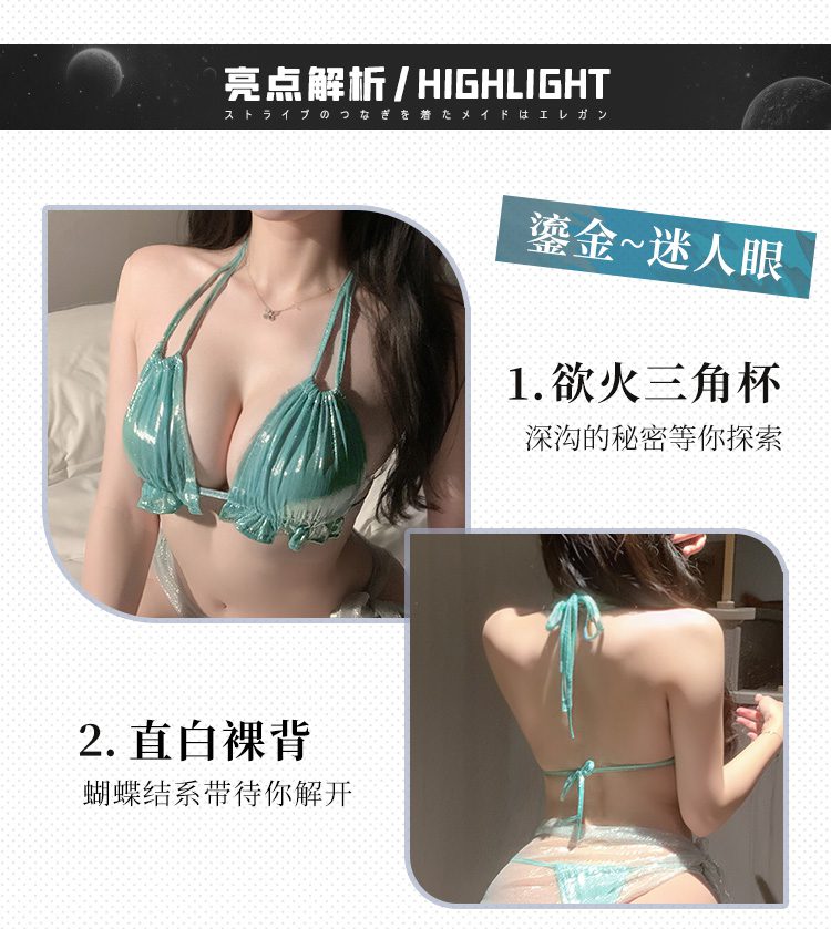浮梦汤泉亮闪三点式套装7905情趣内衣性感大露背露胸透视诱惑